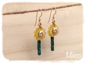 イエロークオーツと太陽とターコイズでひまわり風なピアス。
