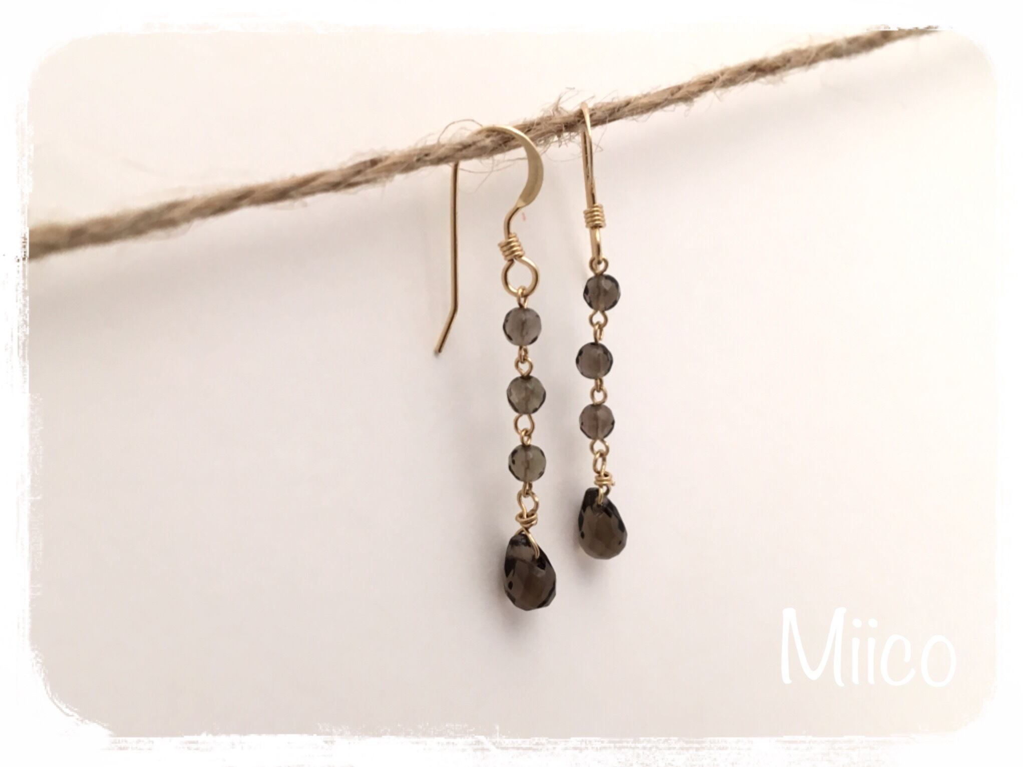 3mmのスモーキークオーツとしずくのスモーキークオーツをアレンジ。